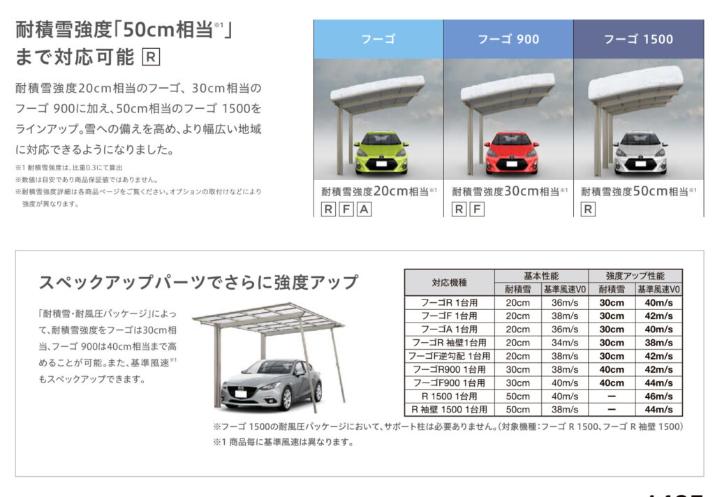 ・豪雪地帯ではさらに強度の高いカーポートを検討したほうが安心。